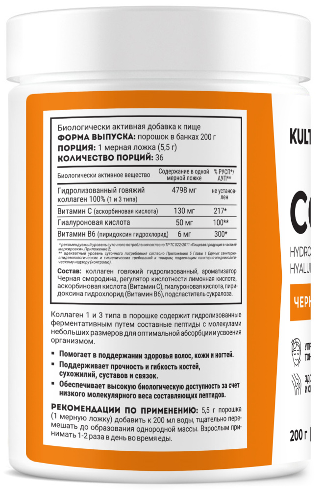 Коллаген со вкусом черной смородины. Растворяется отлично, в воде комнатной температуры, без осадка и взвеси. Вкус прекрасный, с удовольствием пью. Говорить об эффекте спустя неделю приема рано, пока только кожа просит меньше крема. Взяла для улучшения растяжки (занимаюсь йогой и все хрустит, блокируется) и для улучшения качества кожи, возрастные изменения замедлить.
