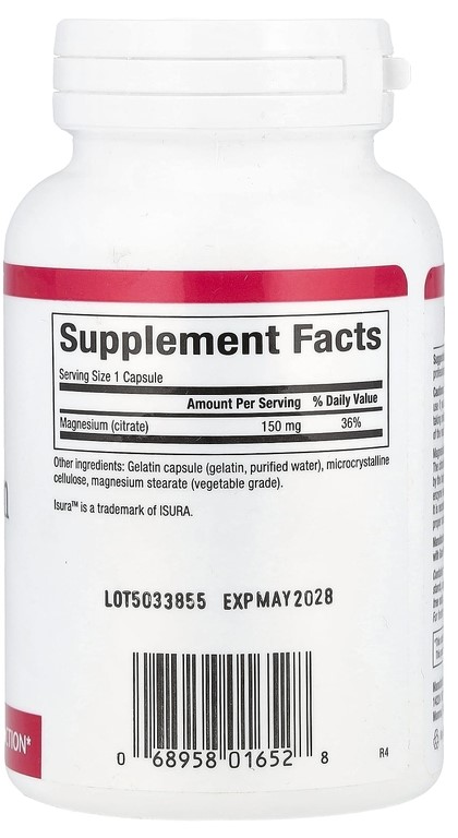 Цитрат магния заключен в капсулы, которые легко глотать. Цитратная форма магния чрезвычайно хорошо усваивается и отлично переносится организмом. Магний принимает участие в сотнях ферментных реакций и необходим для нормальной работы сердца. Магний участвует в синтезе белка, углеводном обмене, он нужен для правильной работы мышц, помогает усваивать кальций и калий.