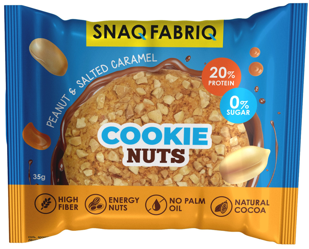 Поверхность данного печенья полностью покрыта орешками, а внизу печенья находится глазурь из вкусного шоколада без добавления сахара. Встречайте новый хит линейки Snaq Fabric.